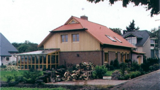 Konstruktion1 Erdgeschoß und 1 Dachgeschoß ohne Unterkellerung Das Gebäude wurde in konventioneller Bauweise geplant und ausgeführt, d.h. zweischalige Mauerwerksaußenwände und über dem Erdgeschoß eine Stahlbetondecke. BesonderheitUm eine größtmögliche Flexibilität im Dachgeschoß zu erreichen wurde die Dachkonstruktion als Kehlbalkendach im Normalbereich und als Pfettendach im Bereich es einlaufenden Nebendachs, das sich auf der Rückseite des Hauses befindet, statisch nachgewiesen. Dadurch konnte die erforderliche Anzahl der Stützen im Dachgeschoß auf zwei reduziert werden. (eigenverantwortlich bei der EILERS+VOGEL GmbH) |